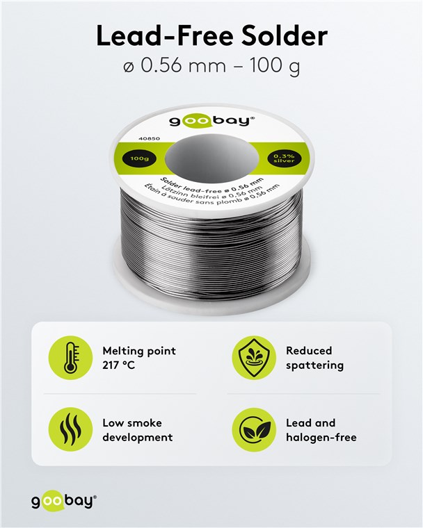 Weiterführende Links zu "Goobay 40850 Lötzinn bleifrei, ø 0,56 mm, 100 g VPE Bulk Mindestbestellmenge 1"
