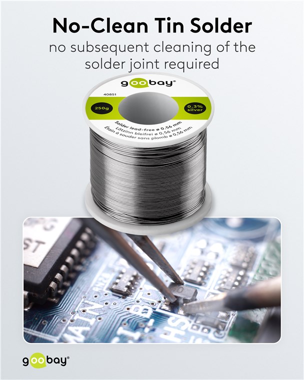 Weiterführende Links zu "Goobay 40851 Lötzinn bleifrei, ø 0,56 mm, 250 g VPE Bulk Mindestbestellmenge 1"