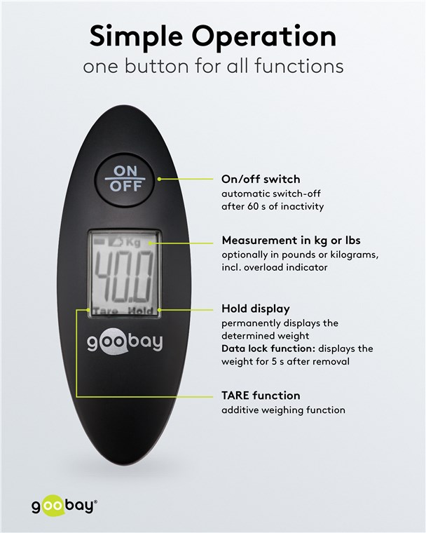 Weiterführende Links zu "Goobay 71882 Digitale Kofferwaage Basic VPE Retail Box Mindestbestellmenge 1"