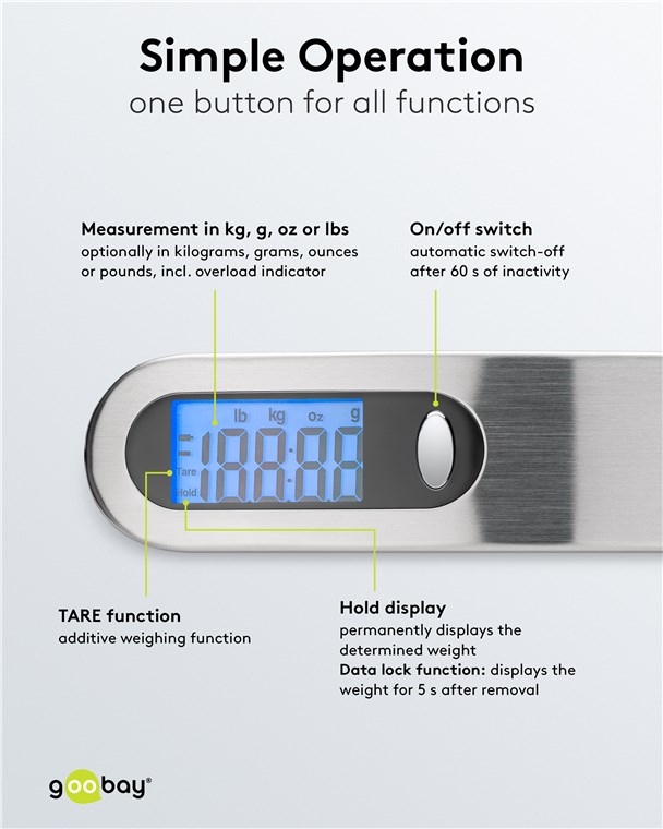 Weiterführende Links zu "Goobay 71883 Digitale Kofferwaage Pro VPE Retail Box Mindestbestellmenge 1"