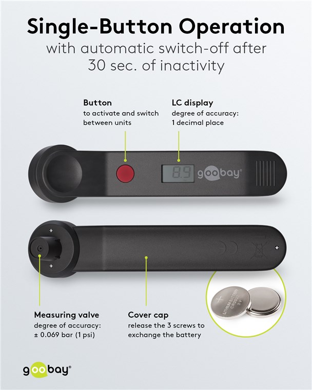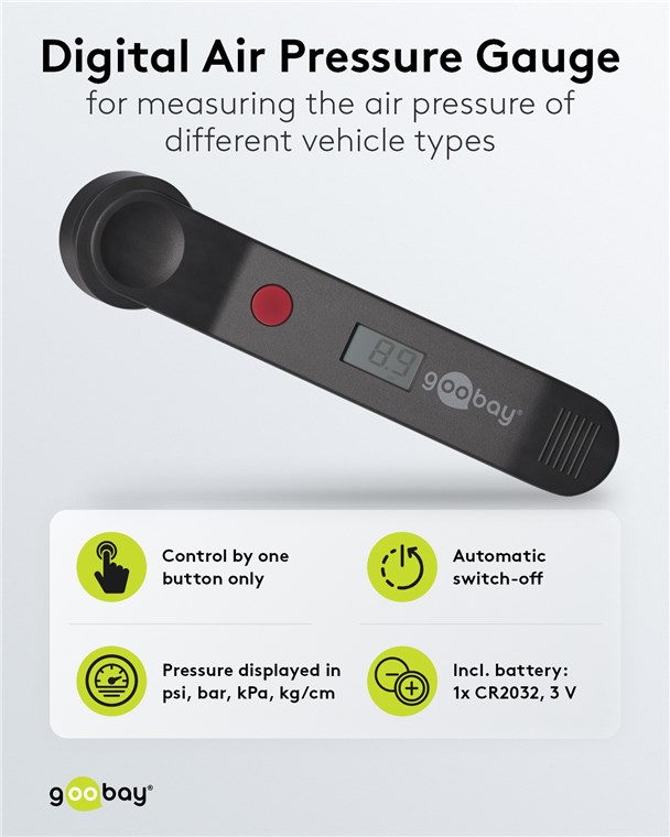 Weiterführende Links zu "Goobay 59799 Digitaler Luftdruckprüfer VPE Retail Box Mindestbestellmenge 1"