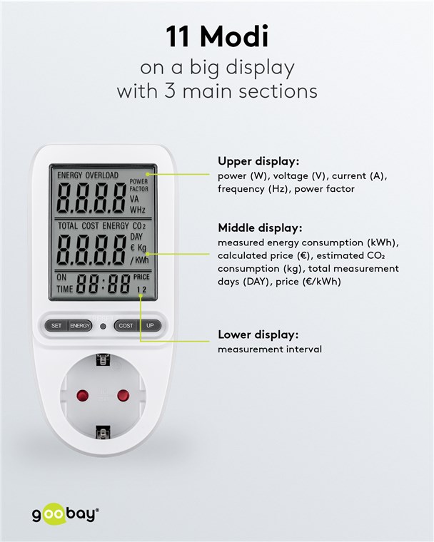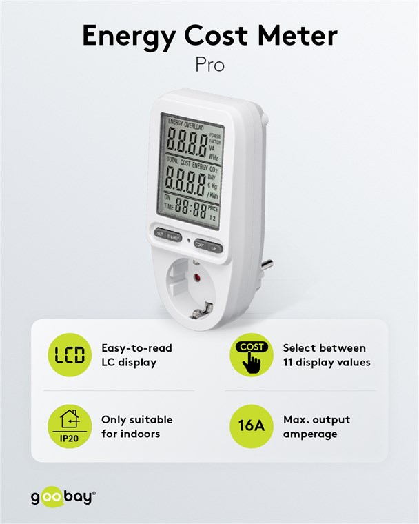 Produktinformationen "Goobay 64590 Digitales Energiekostenmessgerät Pro VPE Retail Box Mindestbestellmenge 1"