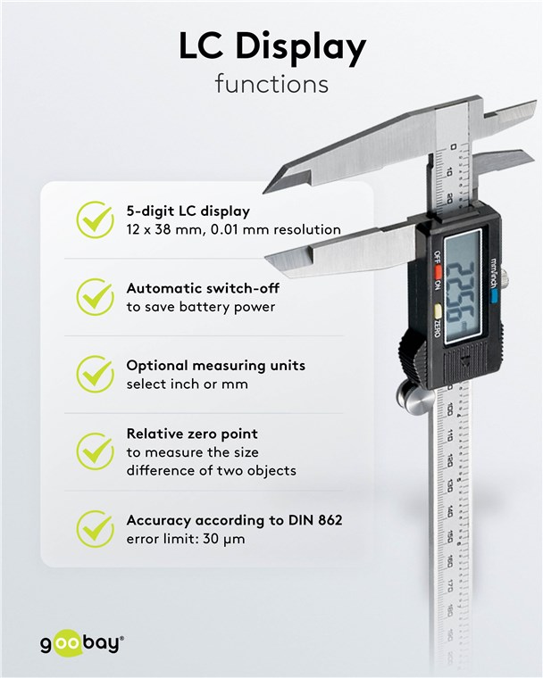 Weiterführende Links zu "Goobay 77139 Digitaler Messschieber 300 mm / 12 Zoll VPE Retail Box Mindestbestellmenge 1"