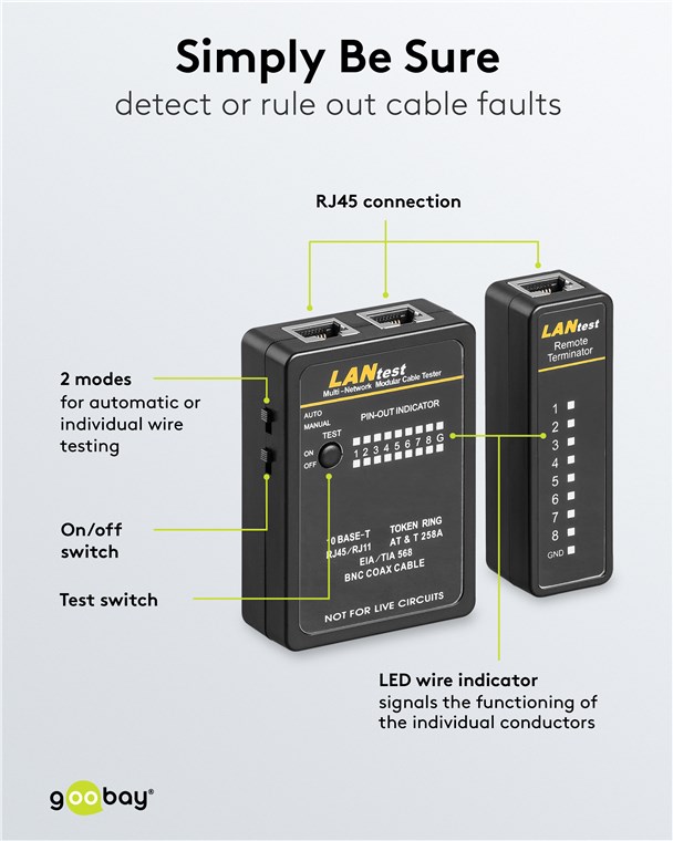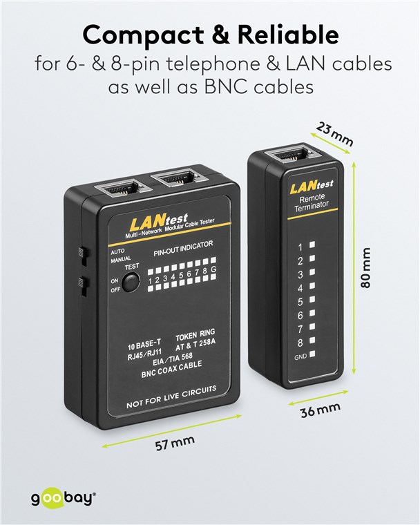 Weiterführende Links zu "Goobay 93010 Netzwerk-Kabeltester-Set VPE Retail Box Mindestbestellmenge 1"