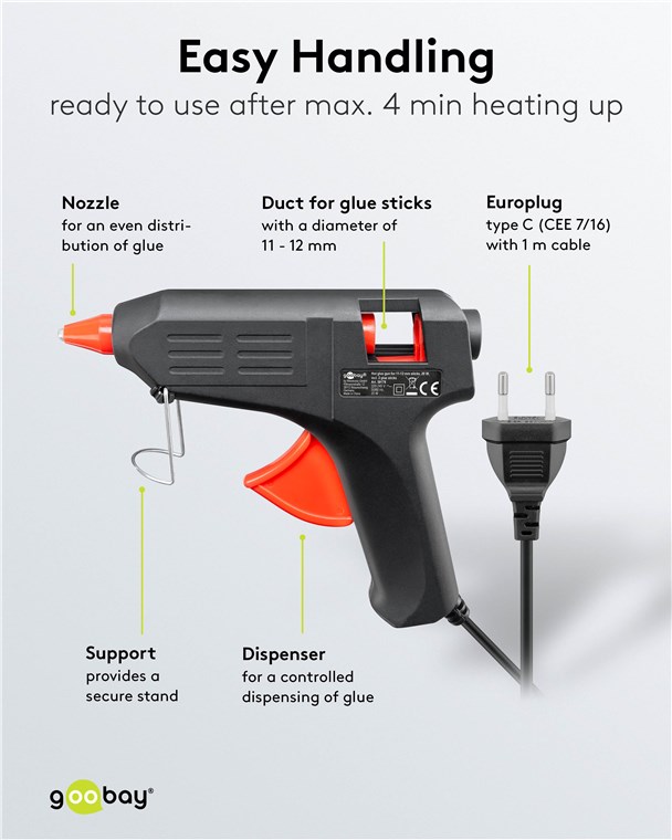 Produktinformationen "Goobay 59176 Heißklebepistole für 11 - 12 mm Sticks, 20 W, inkl. 2 Klebesticks VPE Retail Box Mindestbestellmenge 1"