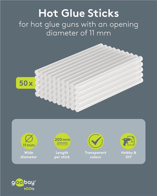 Produktinformationen "Goobay Tools 77853 Heißklebesticks 11 mm, 50 Stk. VPE Retail Box Mindestbestellmenge 1"