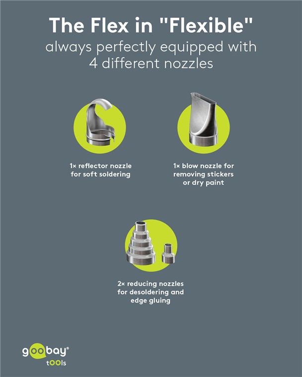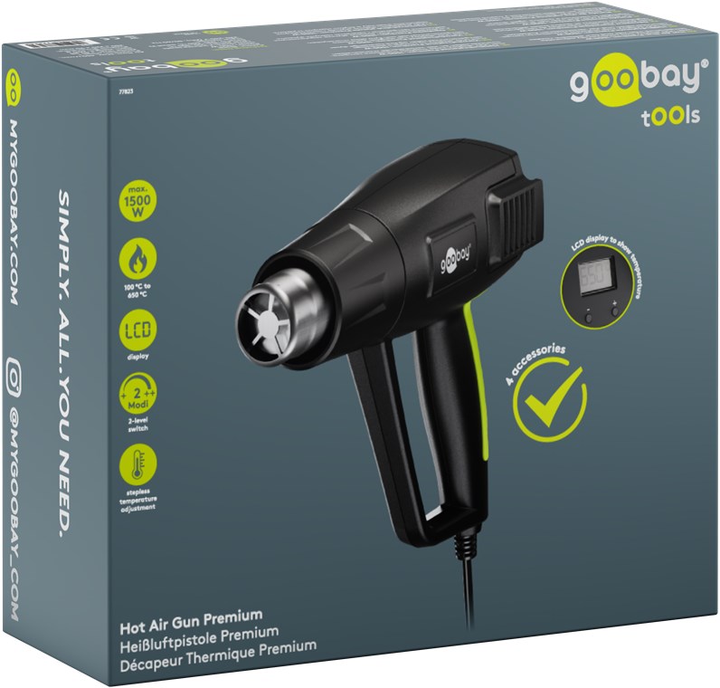 Weiterführende Links zu "Goobay Tools 77823 Heißluftpistole Premium, 1500 W VPE Retail Box Mindestbestellmenge 1"