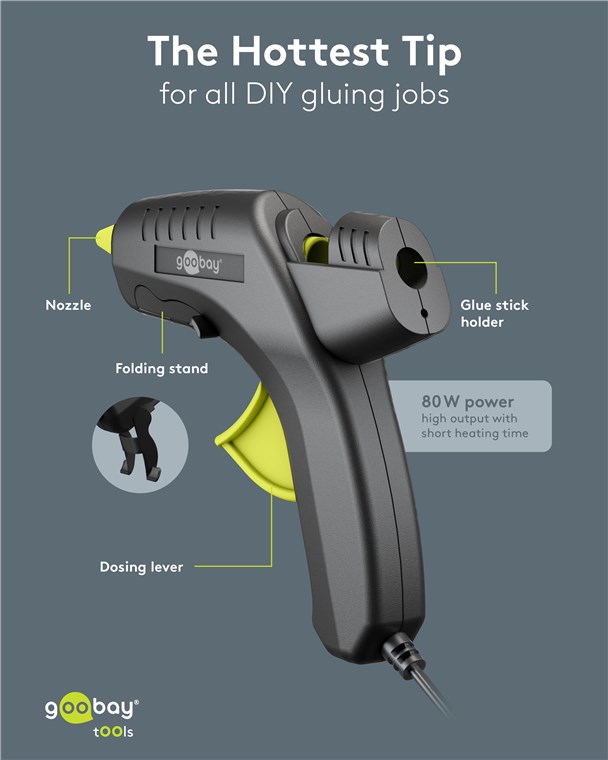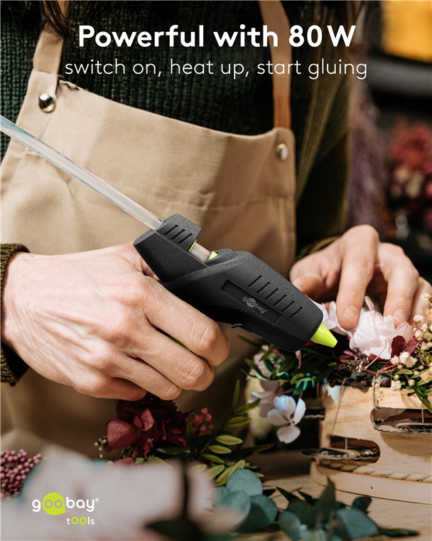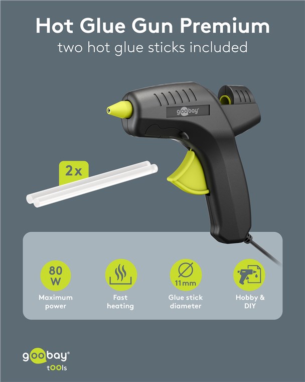 Produktinformationen "Goobay Tools 77824 Heißklebepistole Premium 80 W, inkl. 2 Klebesticks VPE Retail Box Mindestbestellmenge 1"