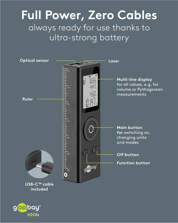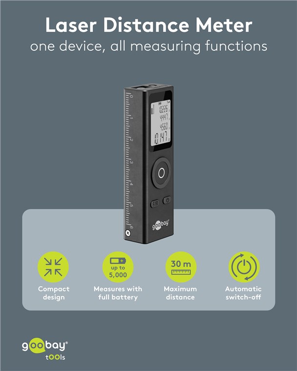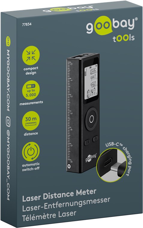 Produktinformationen "Goobay Tools 77834 Laser-Entfernungsmesser VPE Retail Box Mindestbestellmenge 1"