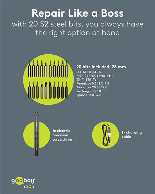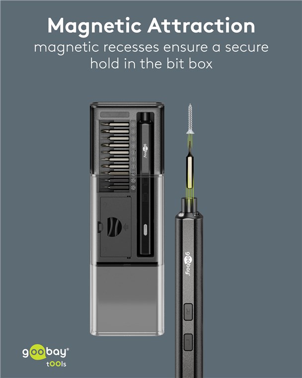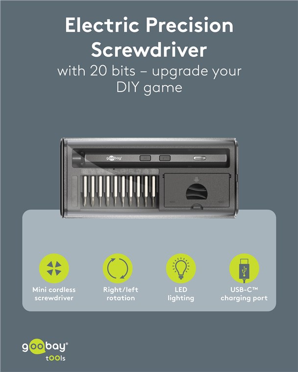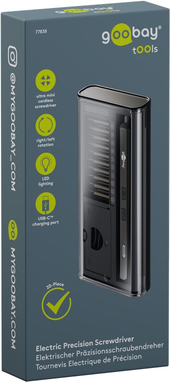 Produktinformationen "Goobay Tools 77838 Elektrischer Schraubendreher mit 20-tlg. Präzisions-Bitsatz VPE Retail Box Mindestbestellmenge 1"