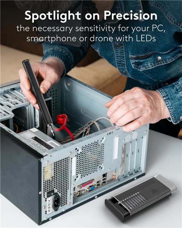• Der schlanke, elektrische Schraubenzieher liegt gut in der Hand und sorgt für das nötige Feingefühl bei der Arbeit an Smartphone, Laptop, PC, Drohne etc.
