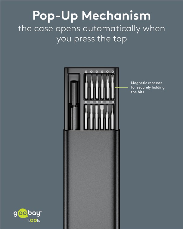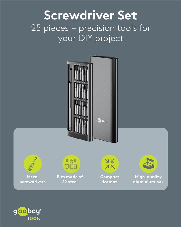 Produktinformationen "Goobay Tools 77836 Schraubendreher-Set mit 24-tlg. Präzisions-Bitsatz VPE Retail Box Mindestbestellmenge 1"