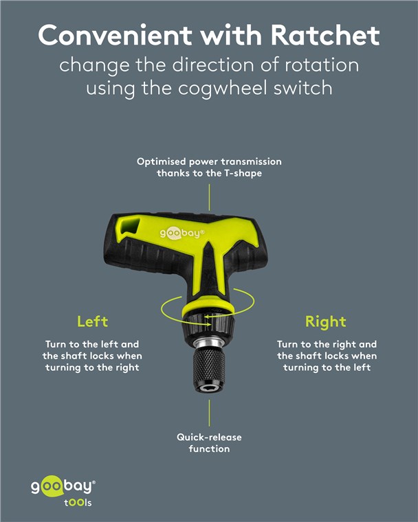 • Optimierte Kraftübertragung durch T-Ratsche: 1x T-Griff-Ratsche mit gummiertem Griff und Quick-Release-Funktion zum einfachen Lösen der Bits, Öffnung: 1/4 Zoll