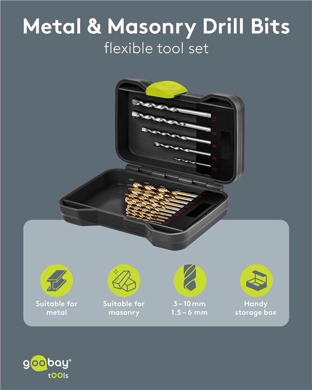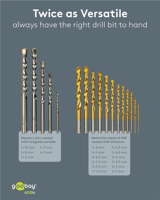 Weiterführende Links zu "Goobay Tools 77848 Metall- und Steinbohrer-Set, 17-tlg. VPE Retail Box Mindestbestellmenge 1"