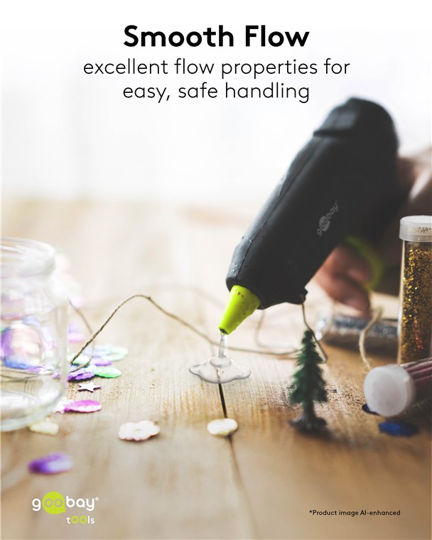 • Für fast unsichtbare Klebestellen: Nach dem Trocknen ist der Heißkleber transparent und damit optisch dezent