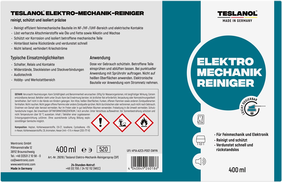 Weiterführende Links zu "Teslanol 26018 Elektro-Mechanik-Reinigerspray VPE Bulk Mindestbestellmenge 1"